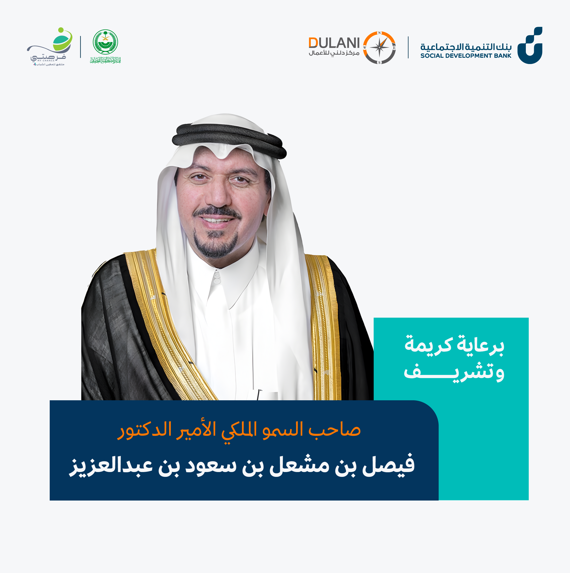 برعاية كريمة من صاحب السمو الملكي الأمير الدكتور فيصل بن مشعل بن سعود بن عبدالعزيز مركز دلني للأعمال يشارك في ملتقى فرصتي الرابع